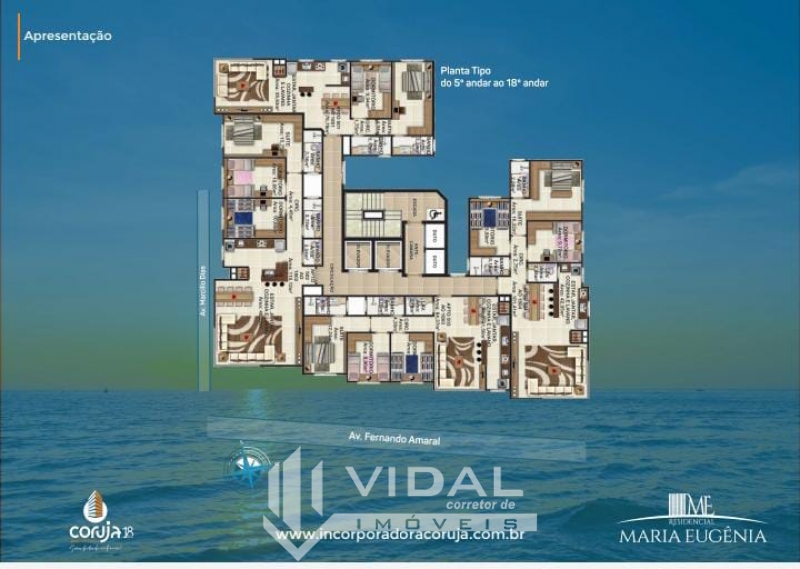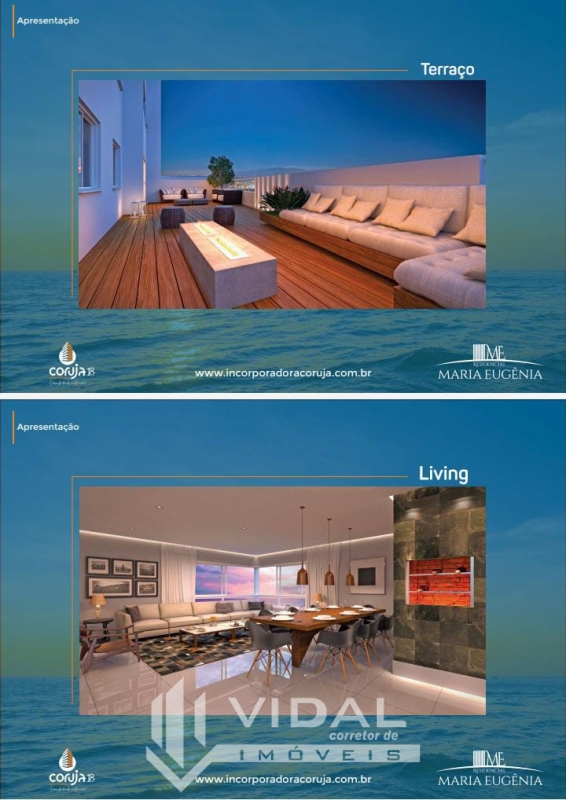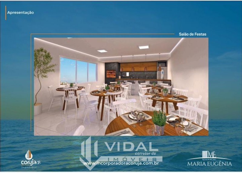 RESIDENCIAL MARIA EUGÊNIA um empreendimento único e exclusivo, sofisticado e de bom gosto, contanto com apenas 60 unidades conjugando privacidade e conforto, em um lugar ímpar e descritível. Além do alto padrão construtivo da Incorporadora Coruja, o empreendimento está localizado numa das regiões mais privilegiadas de Tramandaí, na Avenida Fernando Amaral 1131. O RESIDENCIAL MARIA EUGÊNIA contará com 04 apartamentos por andar, entre 76m²a 110m², sendo 03 unidades de 03 dormitórios - com suíte e lavabo - e 01 unidade de 02 dormitórios, sendo 01 suíte. O prédio ainda conta com um salão de festas com terraço no 4º andar. - Salão de festas - Sacadas fechadas - Espera para Ar Split - Câmaras nas áreas comuns do condomínio - Esquadrias em Alumínio - Pisos em porcelanato - Hall de entrada decorado com porcelanato - Espera para antena digital de canal fechado - 02 Elevadores - Gás Central - Espera de água quente - Medidores individuais de água e gás - Fachadas revestidas com detalhes em plaquetas - Ótima orientação solar.