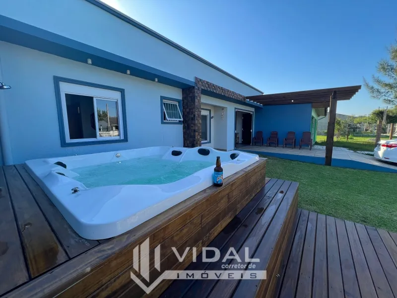 VIDAL CORRETOR DE IMOVEIS VENDE: Excelente residencia em alvenaria muito bem localizada ao lado do Centrinho de Nova Tramandai, melhor localizaçao para moradia ou veraneio com moradores e vizinhos fixos, aproximadamente 500m do mar. Com area construida de 120m² em um terreno de 12 x 25 totalizando 300m². Composta por 03 dormitorios sendo 01 suite, banheiro social, ampla sala de estar e ampla cozinha, garagem coberta para 02 carros, area de serviço, anexo com salao de festas com churrasqueira, lavanderia e banheiro social. Patio frente e fundos todo cercado. Agende agora sua visita!