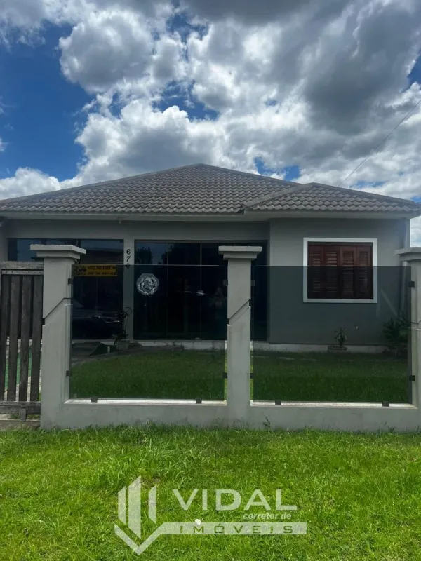 VIDAL CORRETOR DE IMÓVEIS VENDE: Excelente imóvel de alvenaria com forro em gesso, com área construída de 114 m², em terreno de 12 x 25 m² = 300 m², todo cercado, composto de 02 dormitórios, sala de estar e de jantar, cozinha, banheiro social. Nos fundos, quiosque com 01 banheiro social, churrasqueira, fogão campeiro, é área de serviço. Posição solar Costa Mar. Agenda já a sua visita!