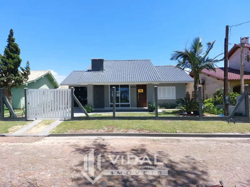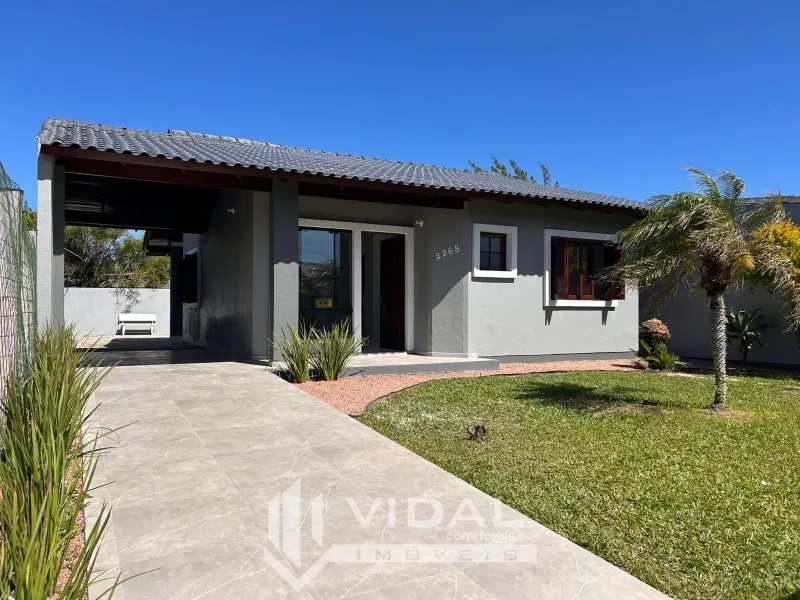 VIDAL CORRETOR DE IMÓVEIS VENDE: Magnifica residencia em alvenaria toda em laje de concreto, piso porcelanato, aberturas em madeira nobre e detalhes em gesso, muito bem localizada, de frente para a avenida asfaltada em região de moradores ao lado do centrinho de Nova Tramandaí. Com área construída de 114m² em um terreno posição norte medindo 12 x 25 totalizando 300m². Composta por 3 dormitórios, sendo 1 suíte, banheiro social, sala de estar com lareira, sala de jantar e cozinha integrados em conceito aberto, garagem fechada com churrasqueira, com acesso aos fundos, onde encontra-se uma linda piscina e quiosque com espaço gourmet, banheiro social e dispensa. Fica semi mobiliada. Apta para financiamento bancário! Agende agora sua visita!